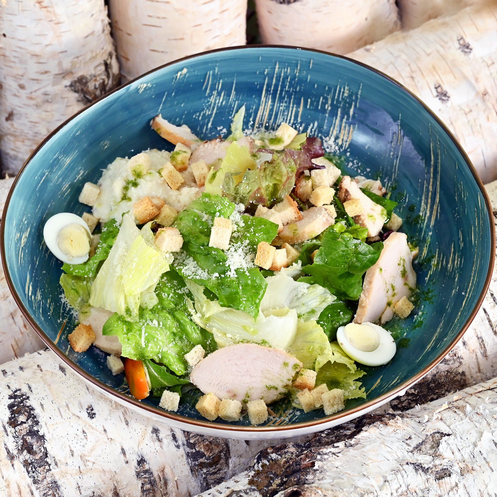 Цезарь с филе цыплёнка на гриле с миксом салата и пармезаном, 220гр.