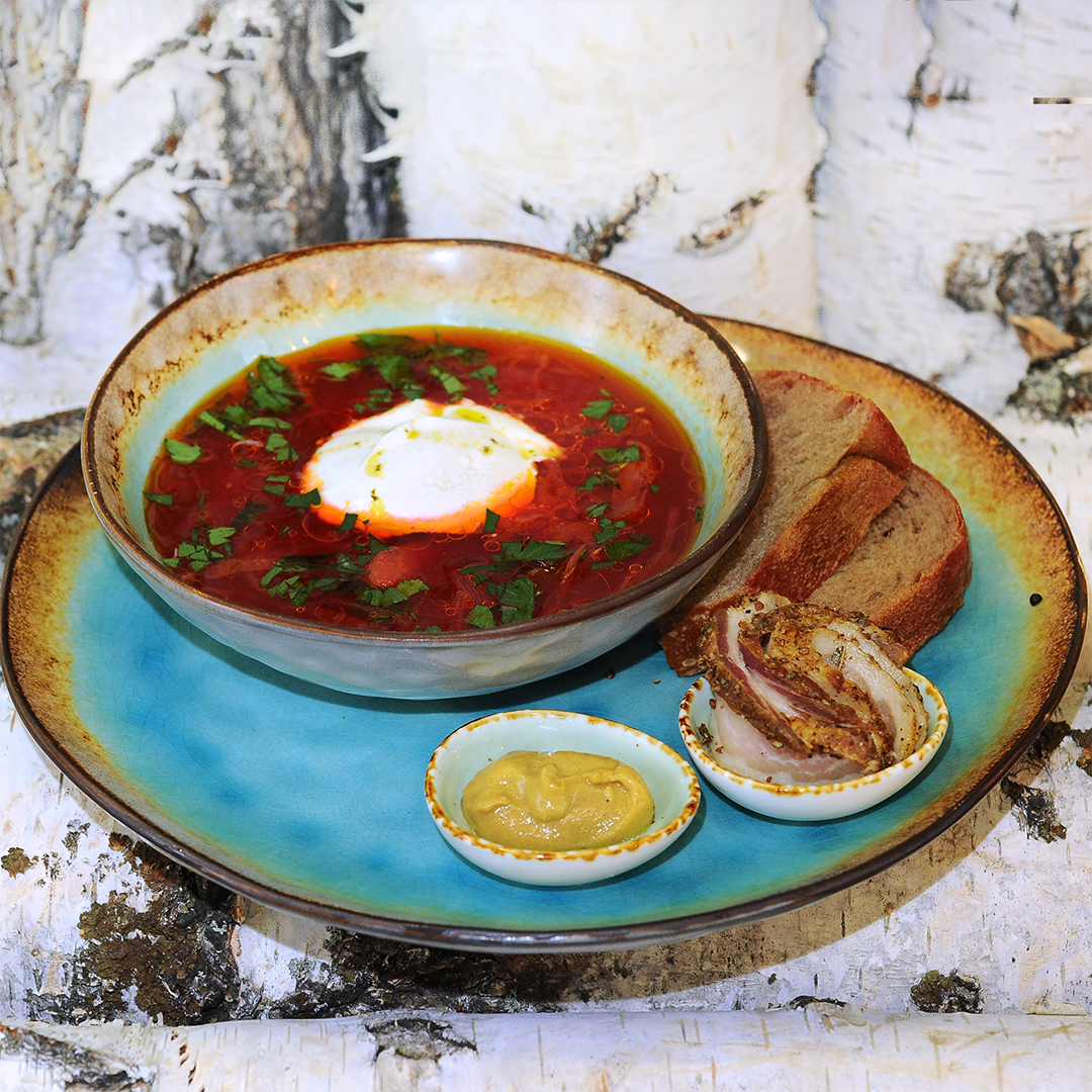Борщ сибирский с томлёными щеками и смальцем из кабана, 400гр. |