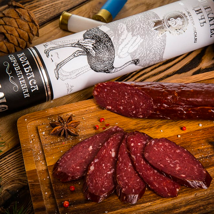 Мясо страуса, филе индейки, соль, перец, нитрит натрия. |