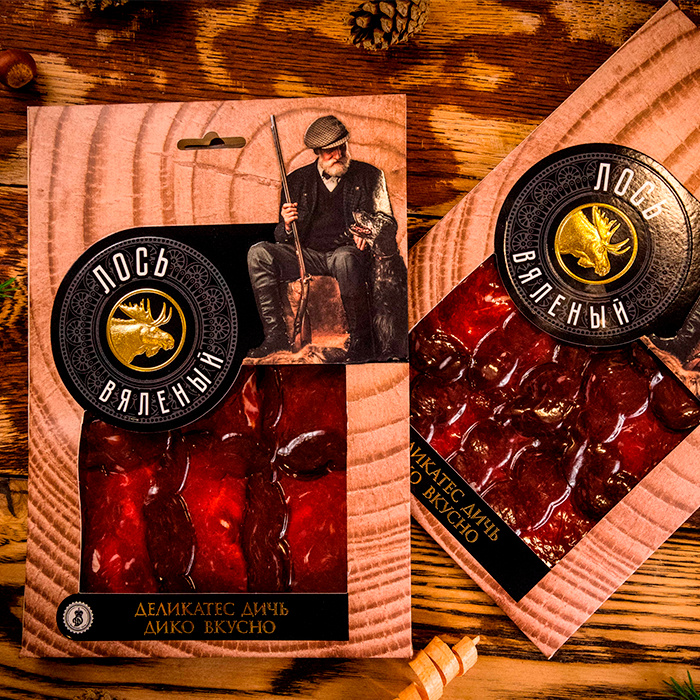 Мясо лося, перец черный, фиксатор окраски (нитрит натрия), посолочная смесь (соль поваренная пищевая). |