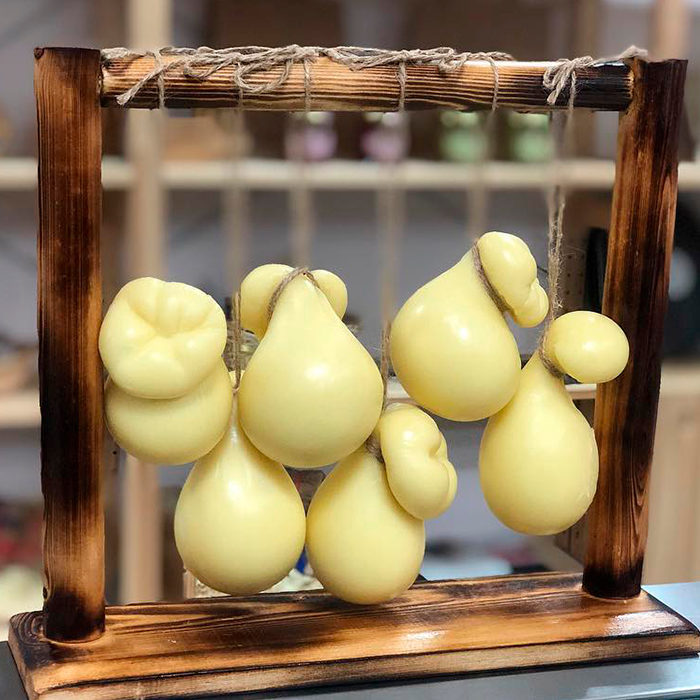 Скаморца - сыр уникальной формы, обладает неповторимой сырной консистенцией: слоистая, плотная, в меру мягкая. Прекрасно сочетается с пастой, овощными запеканками и осенними салатами.