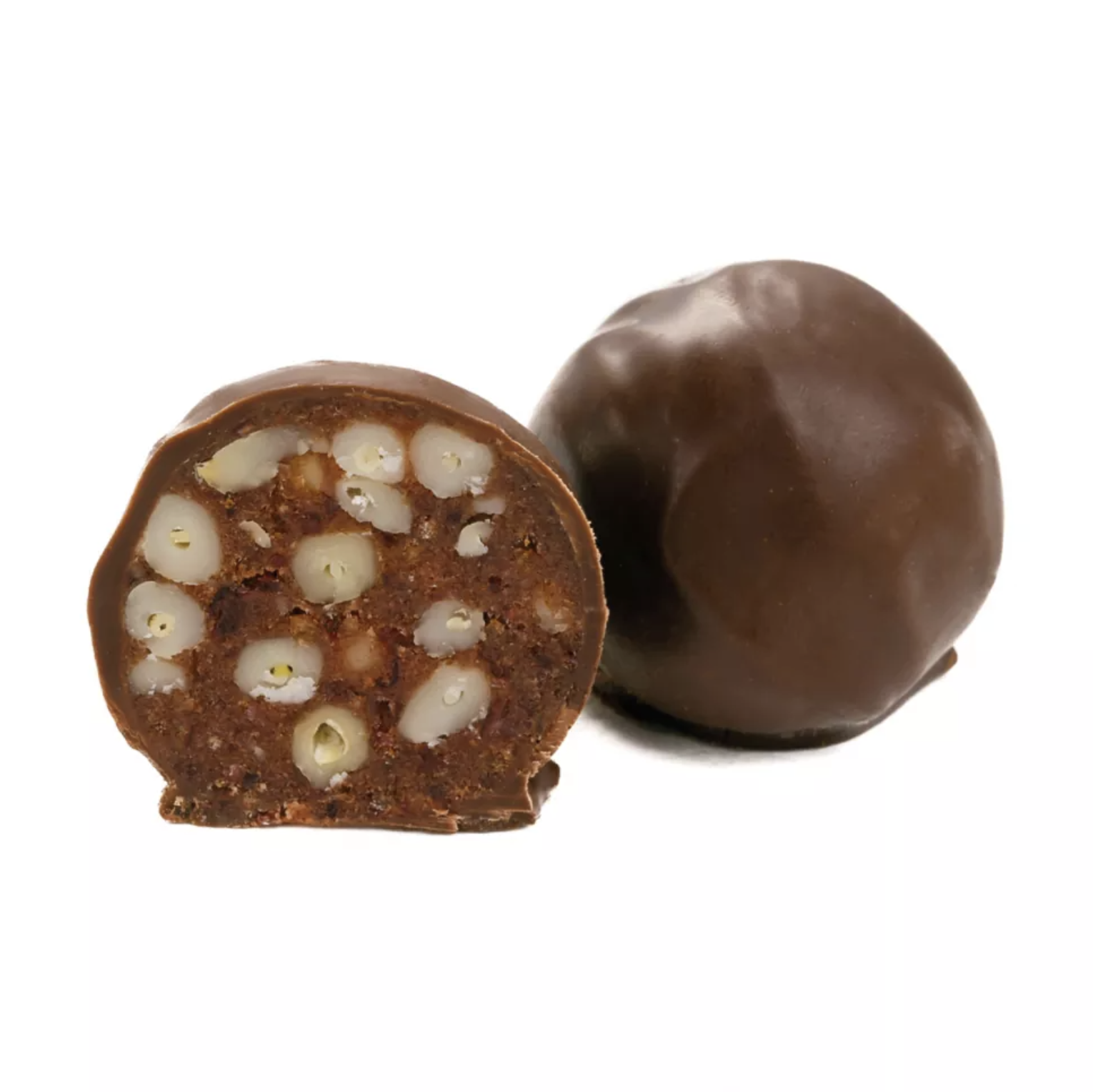 Финики, клюква сушеная, ядро кедрового ореха, темный шоколад (какао тертое, подсластитель мальтитол, масло какао, лецитин, ваниль).