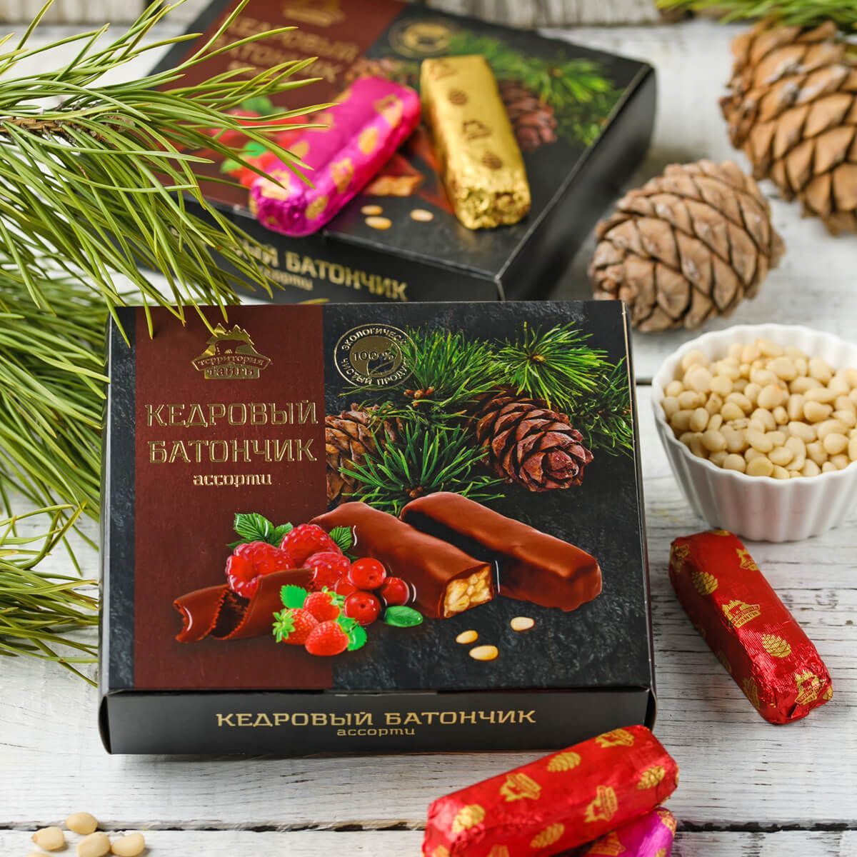 Кедровый батончик в натуральном шоколаде ассорти, коробка 80 гр