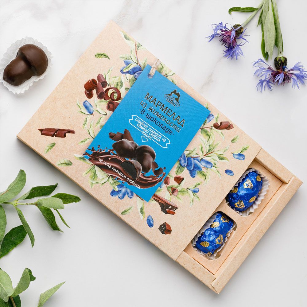 Двойная польза и удовольствие - мармелад из ягоды жимолости, покрытый натуральным шоколадом. Это волшебное сочетание нежнейшего мармелада и хрустящего бельгийского шоколада никого не оставит равнодушным!